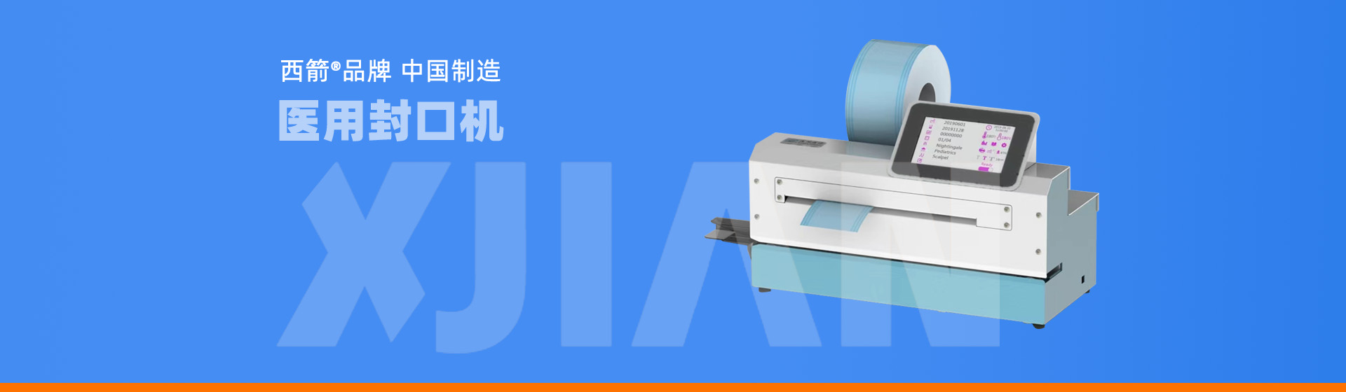 西箭品牌醫用封口機操作規程一、啟動設備:接通設備電源,打開設備左側的總電源開關,封口機進入自檢狀態。二、系統設置:在進入工作界面后,參照設備操作維修手冊進入系統設置界面,對系統時間、系統亮度、屏幕變暗、待機時間和待機溫度進行設置。三、設定溫度:進入工作界面,根據所封袋子的材質調整封口溫度(蒸汽或EO滅菌袋封口溫度為180℃,等離子滅菌袋封口溫度